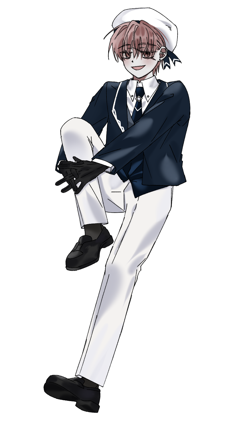 잿빛 섞인 탁한 분홍 머리, 같은 빛깔의 눈. 약간 긴 기장은 시야를 조금 가린다.