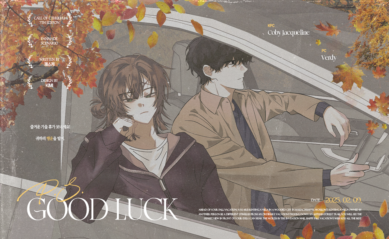 코비 재클린:(이 어이없는 시스템을 잠시 원망하기도, 두려워하기도 했지만. 생동감 없는 표정을 바라보면 그저 몸을 일으켜 자연스레 따라 올라오는 머리통을 한 번 쓰다듬다 문득 손바닥에 감돌았던 익숙한 열기에 머뭇거리기도 한다.) 난 행운론자는 아니지만... 행운을 빌게.